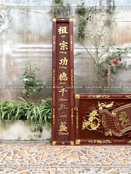 Hoành phi câu đối gỗ, liễn thờ là vật phẩm trang trí cho gian thờ thêm phần sang trọng và linh thiêng. Nhìn vào bộ hoành phi gỗ với mẫu mã, hoa văn tỉ mỉ, tinh tế ta thấy được vẻ đẹp hoài cổ như gian thờ thời xưa của ông cha ta. Bộ hoành phi câu đối bằng gỗ thể hiện được gia phong của gia đình, dòng tộc, mang chuẩn mực, lối sống của người Việt ta.