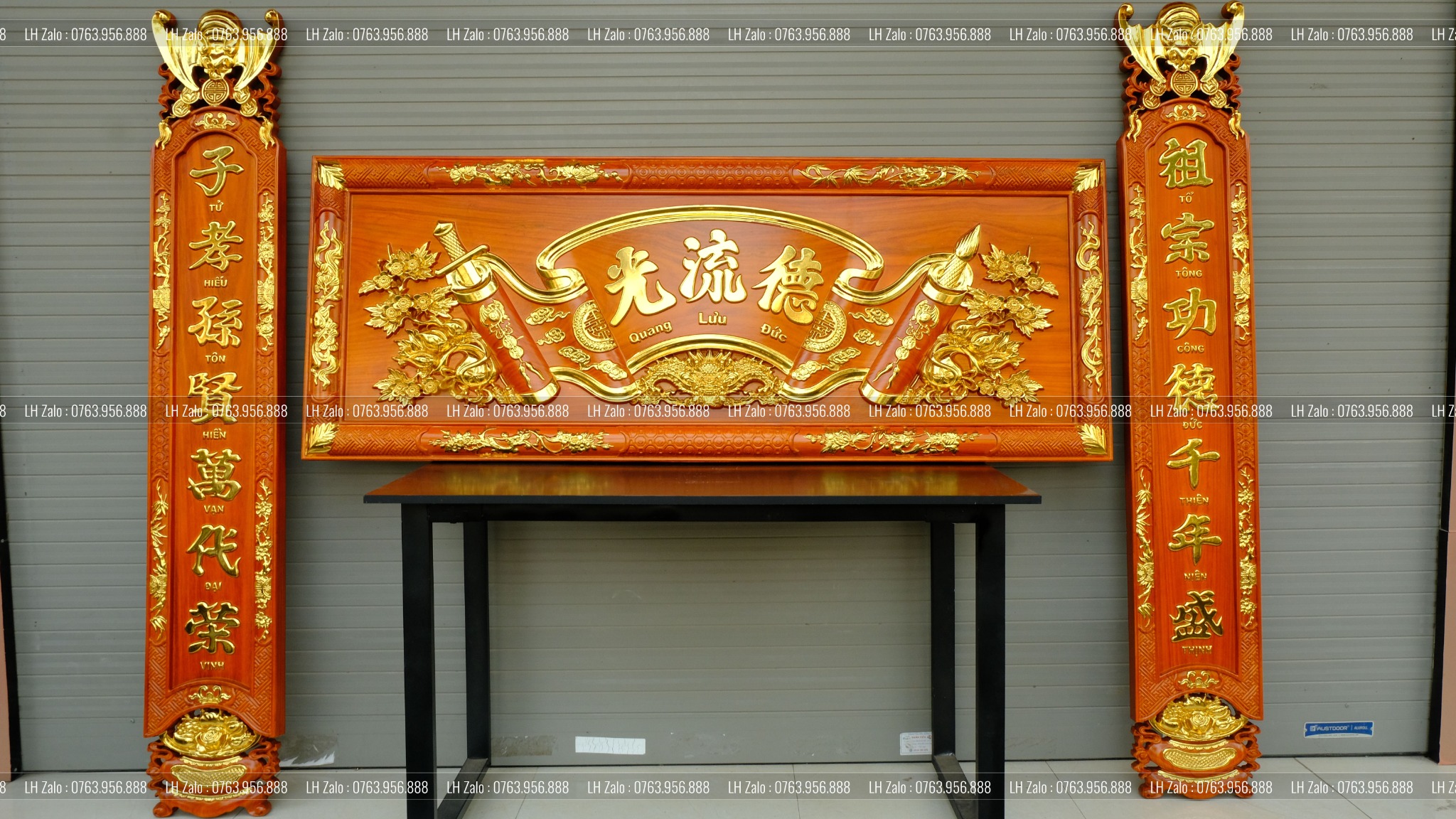 - Hoành phi nguyên khối dày 5cm - Câu đối nguyên khối dày 4cm