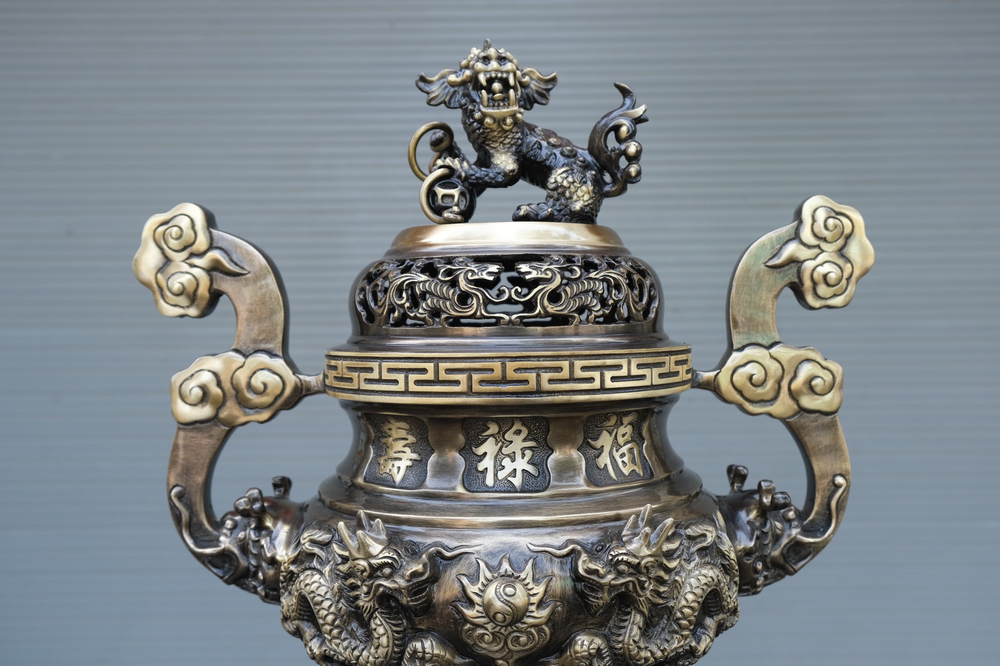 + Đối với bàn thờ dài 1m97, rộng 87cm, cao 1m27: Nên chọn bộ đỉnh đồng cao khoảng 60cm.