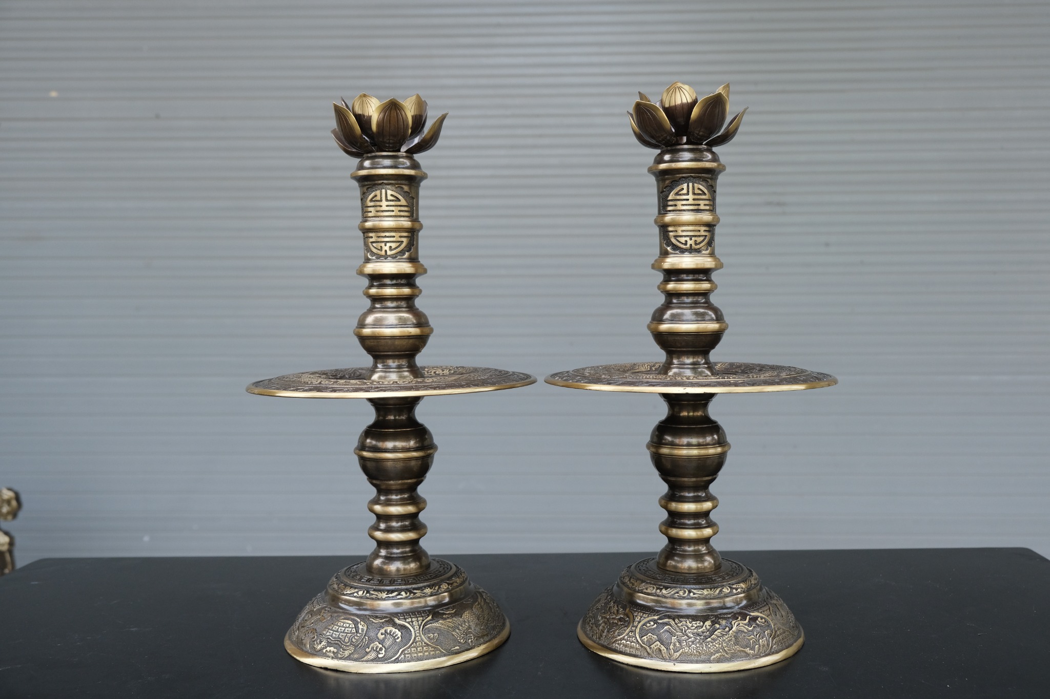 + Đôi chân nến (bao gồm chân đế, bát nến và cốc nến) được đặt hai bên đỉnh đồng. Chân nến có thể được đặt trên đế nến hoặc đặt trực tiếp lên bàn thờ. Chúng được đặt cân đối ở hai bên, về phía trước một chút so với đỉnh đồng.
