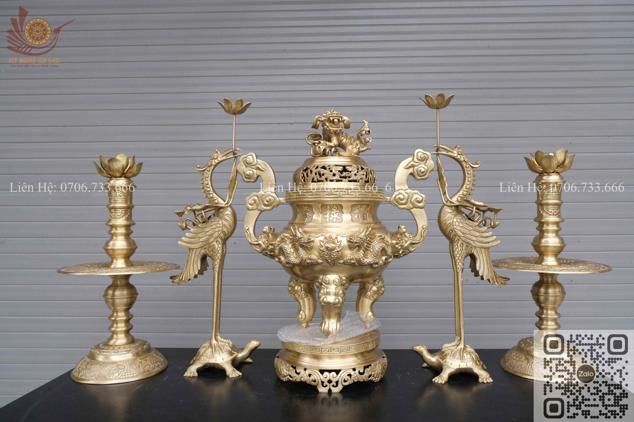 | Kích thước | - Đỉnh cao 60cm - Hạc cao 60cm - Nến cao 45cm - Sen nến 5cm |
