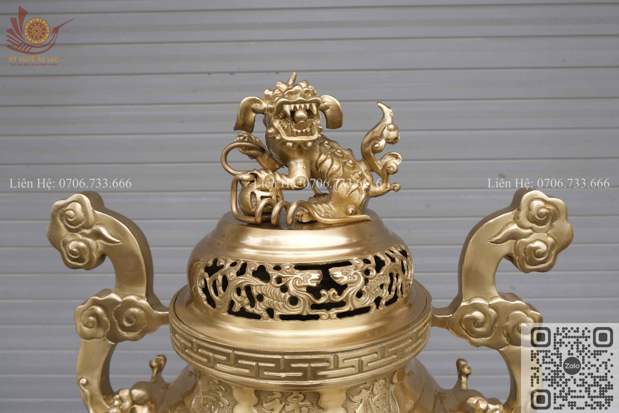 + Đối với bàn thờ dài 2m07, rộng 1m07cm, cao 1m27: Nên chọn bộ đỉnh đồng cao khoảng 70cm.