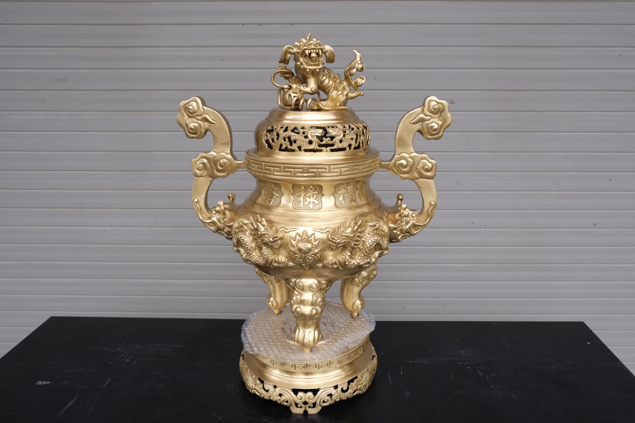 + Đối với bàn thờ dài 1m97, rộng 87cm, cao 1m27: Nên chọn bộ đỉnh đồng cao khoảng 60cm.