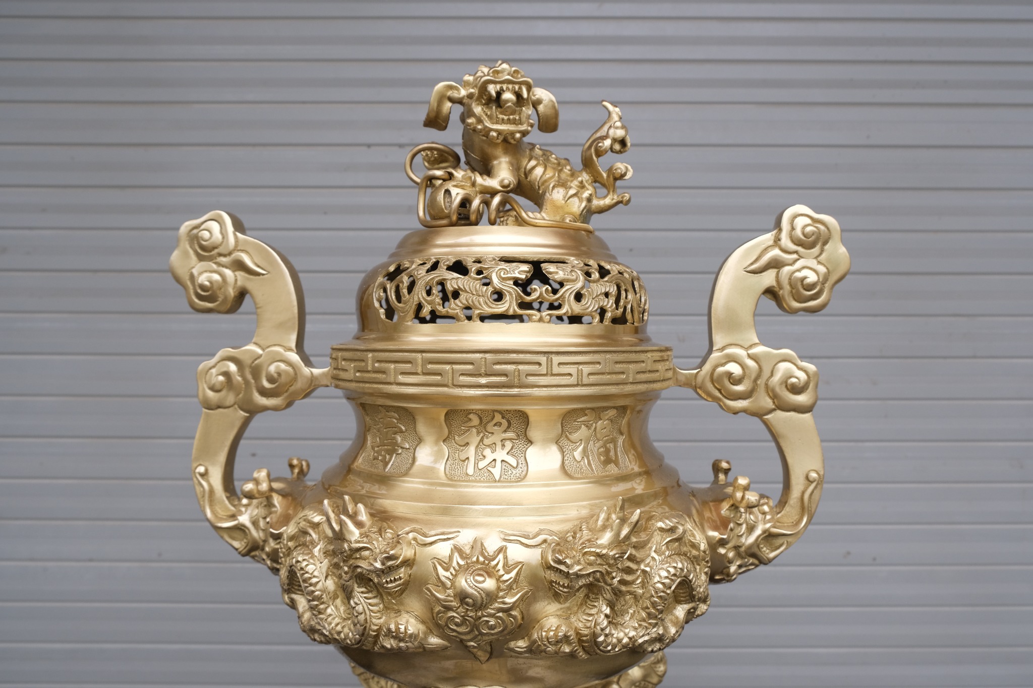 + Đối với bàn thờ dài 2m07, rộng 1m07cm, cao 1m27: Nên chọn bộ đỉnh đồng cao khoảng 70cm.