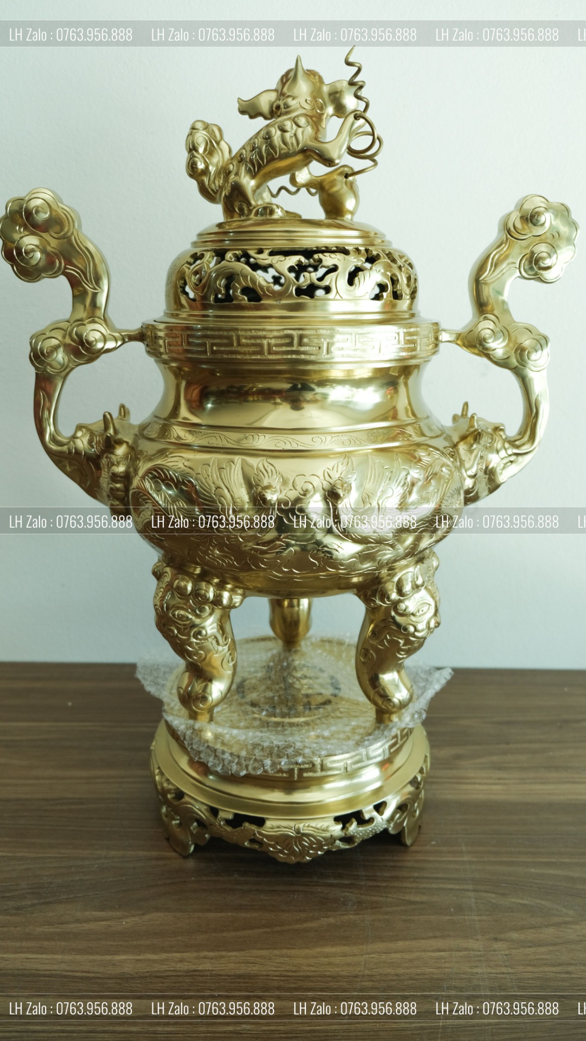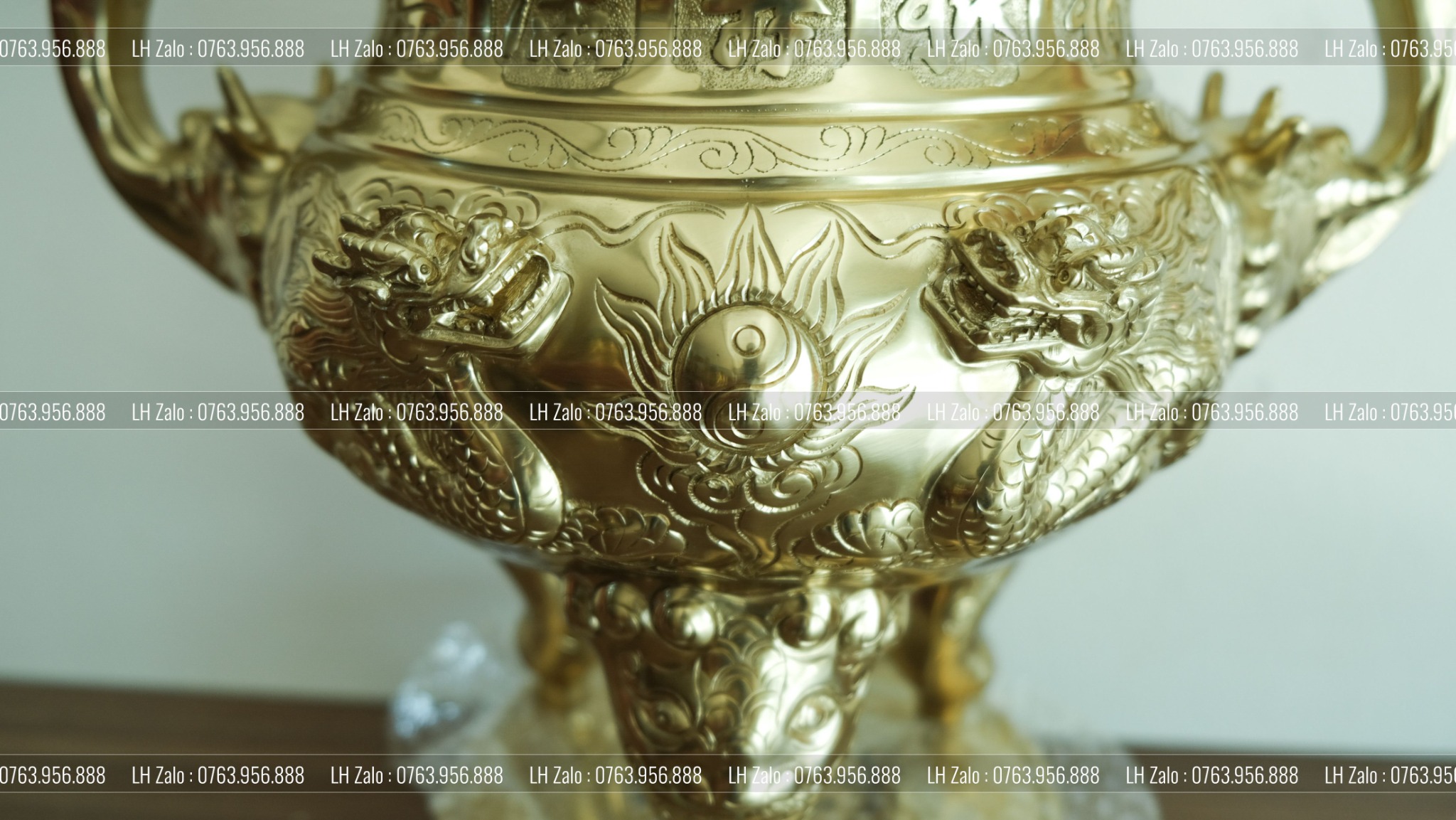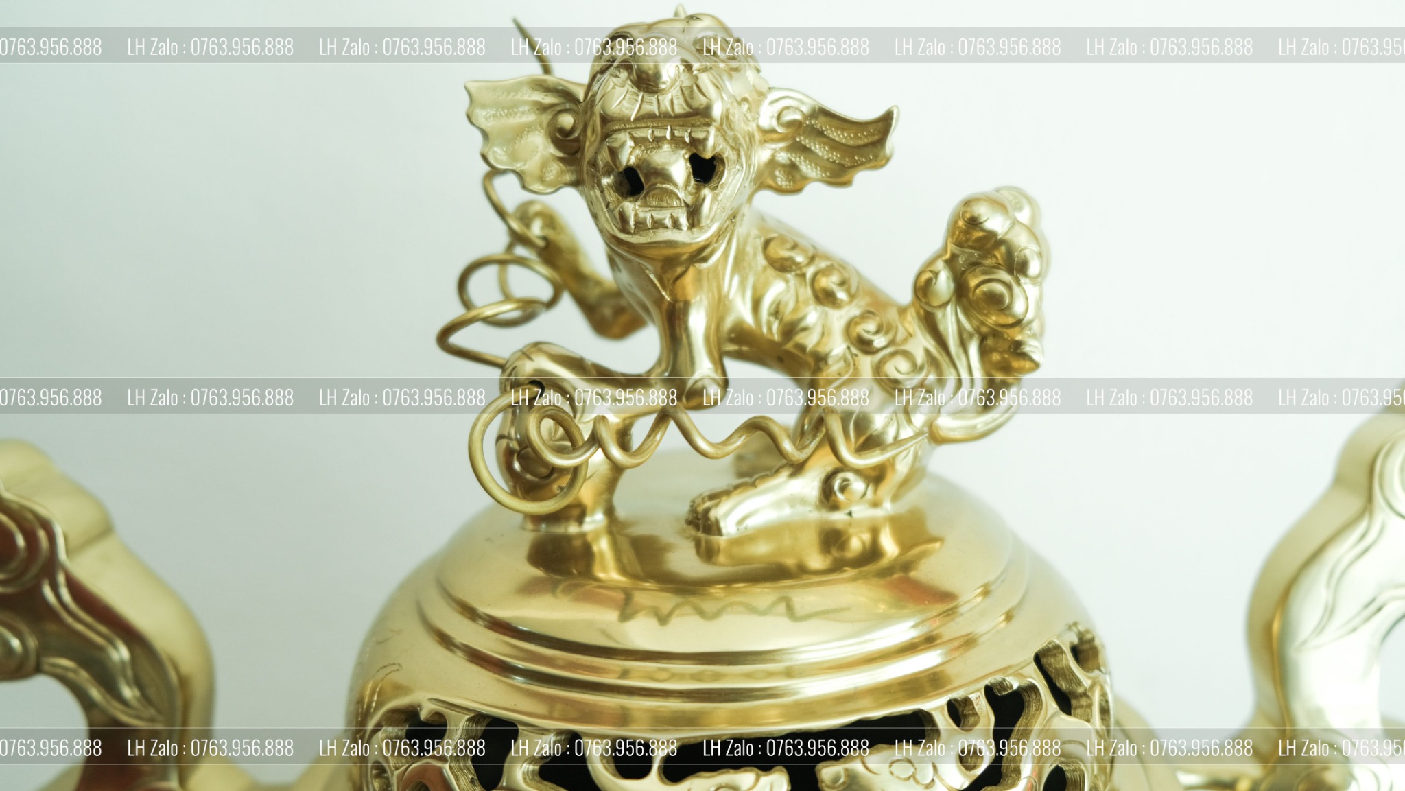 + Đối với bàn thờ dài 1m97, rộng 87cm, cao 1m27: Nên chọn bộ đỉnh đồng cao khoảng 60cm.