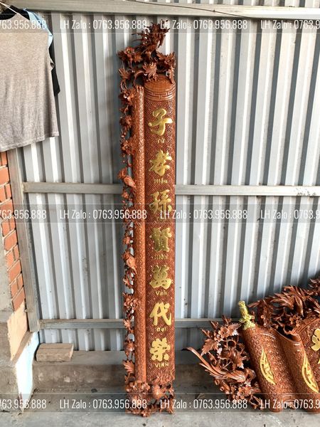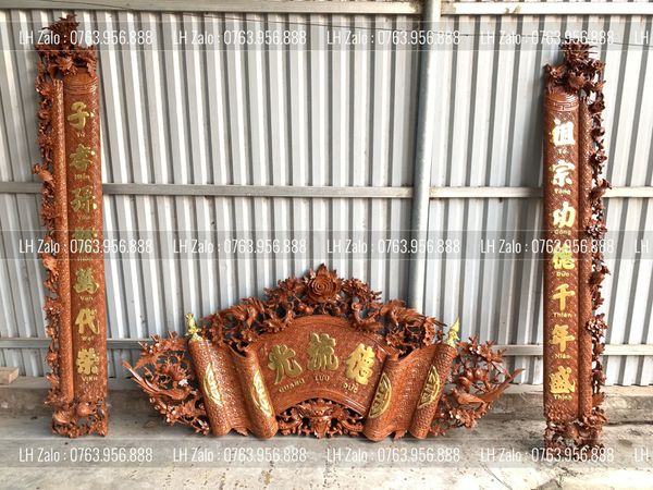 | Kích thước | - Cuốn Thư: Dài 197cm - Rộng 87cm - Dày 4cm - Câu đối: Dài 197cm - Rộng 28cm - Dày 4cm |