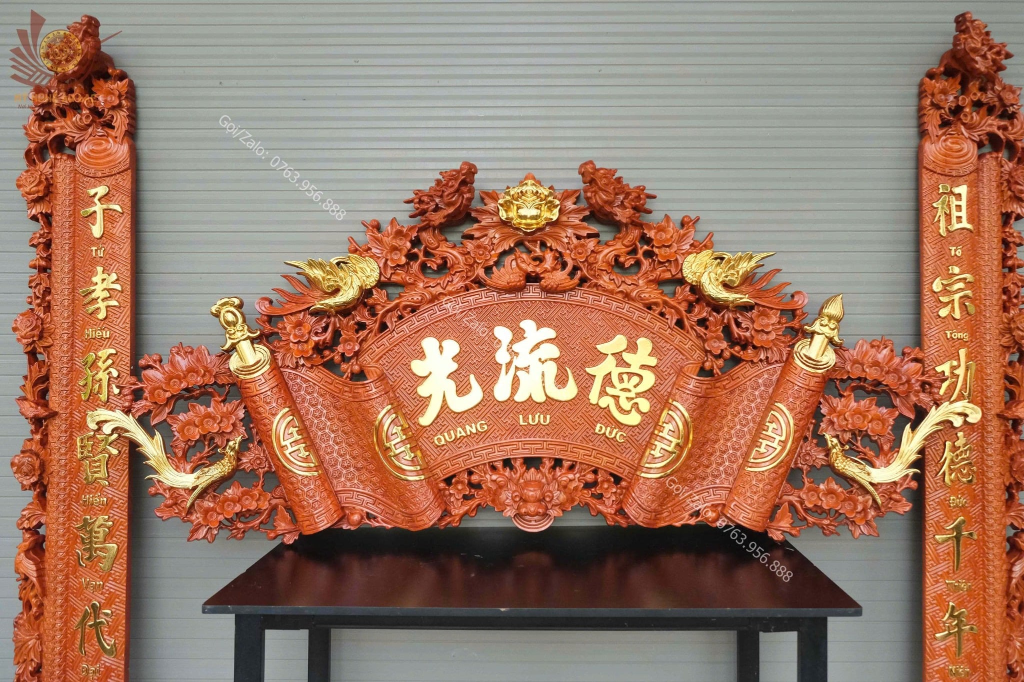 Quy cách | - Bộ cuốn thư được đục sắc nét, kênh bong Từng chi tiết trên bộ cuốn thư, được đục thủ công, tỷ mỷ |