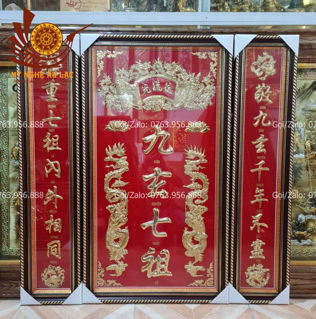 | Quy cách | - Bộ tranh cửu huyền được làm bằng đồng vàng, khung bằng đồng - Độ dày 4 rem |