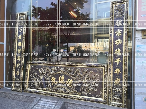 | Quy cách | - Đại tự ngang 176cm, cao 68cm - Câu đối thẳng cao 176cm, ngang 28cm - Chế tác thủ công |