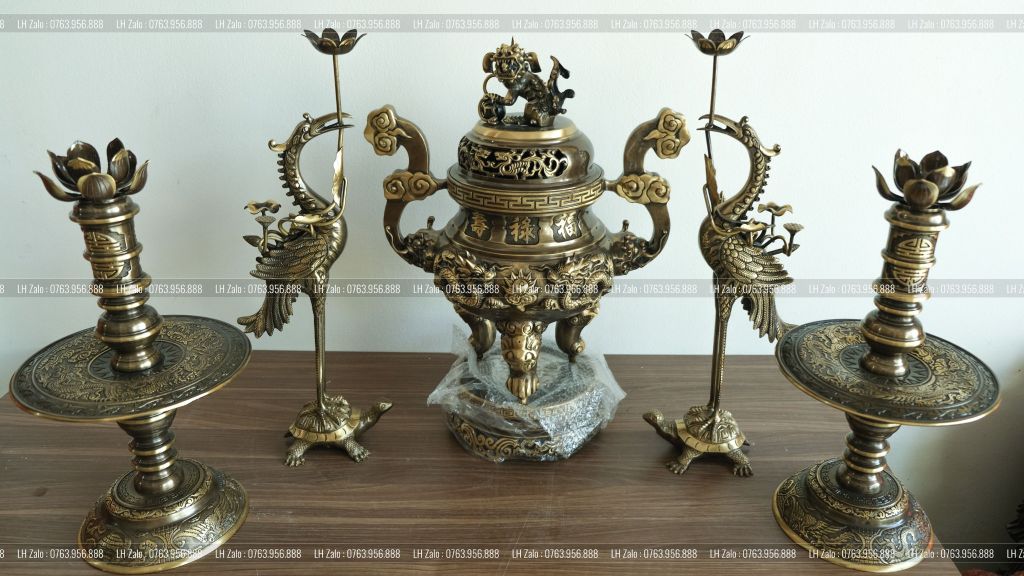 | Kích thước | - Đỉnh cao 45cm - Hạc cao 46cm - Nến cao 35cm - Sen nến 5cm |