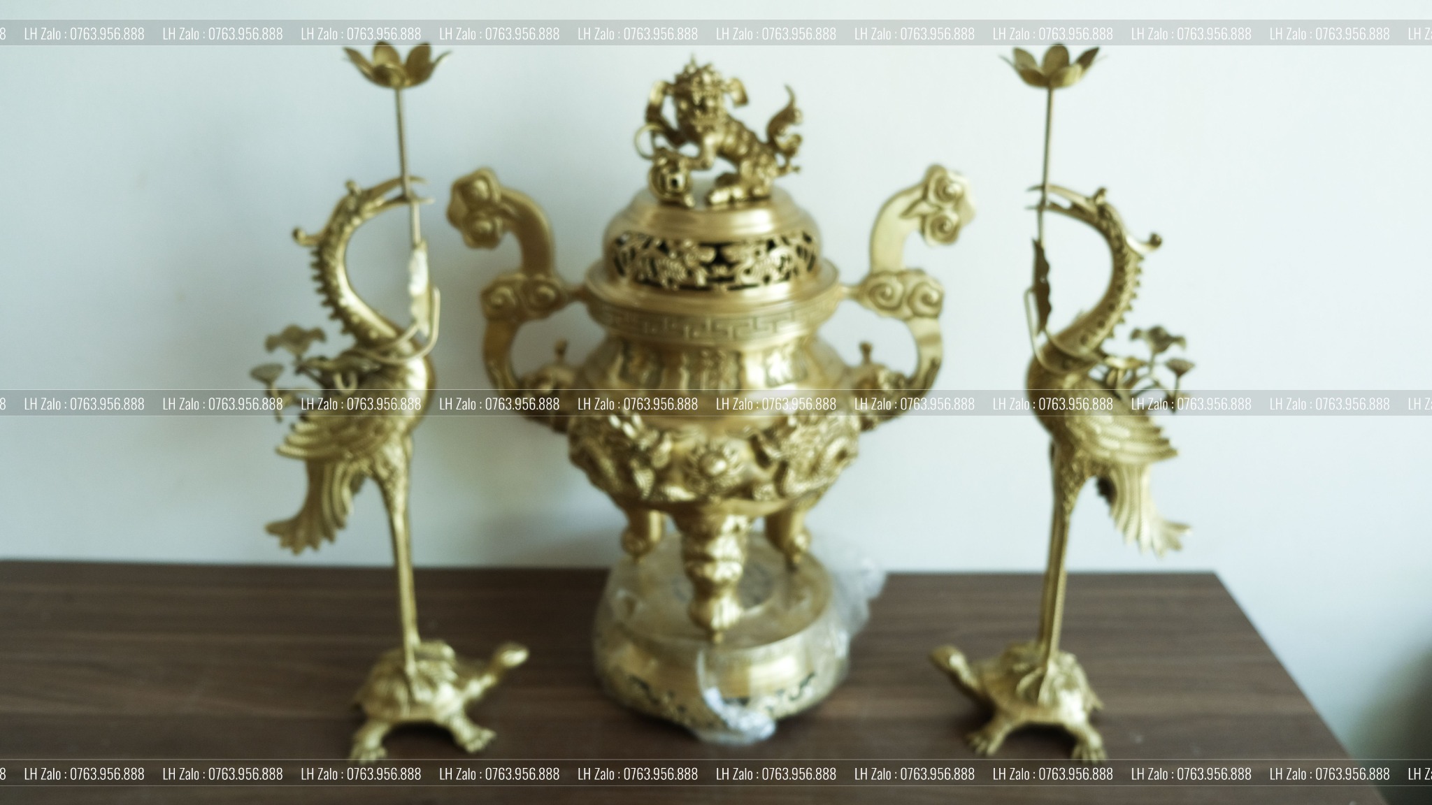 | Kích thước | - Đỉnh cao 60cm - Hạc cao 60cm - Nến cao 45cm - Sen nến 5cm |