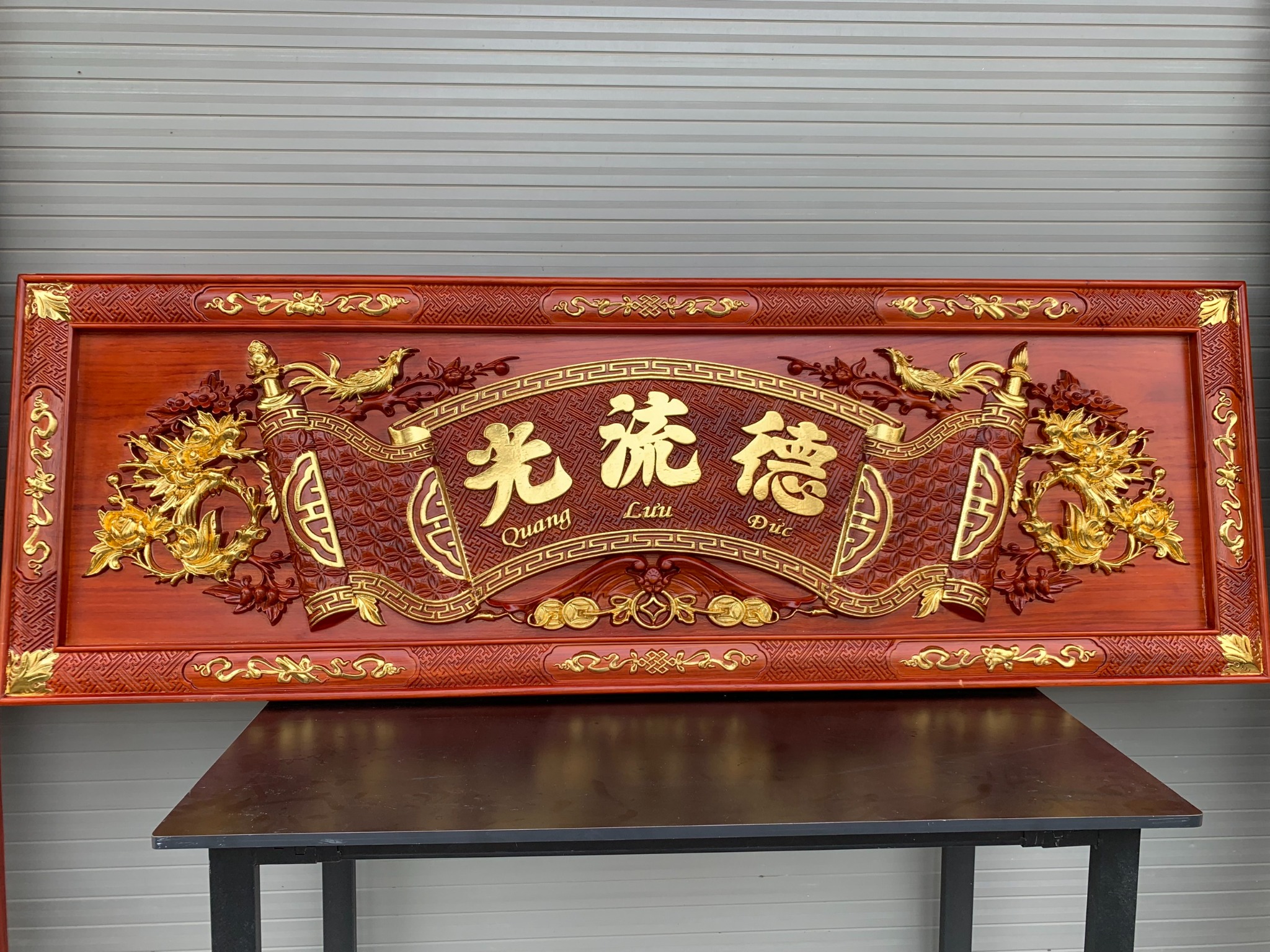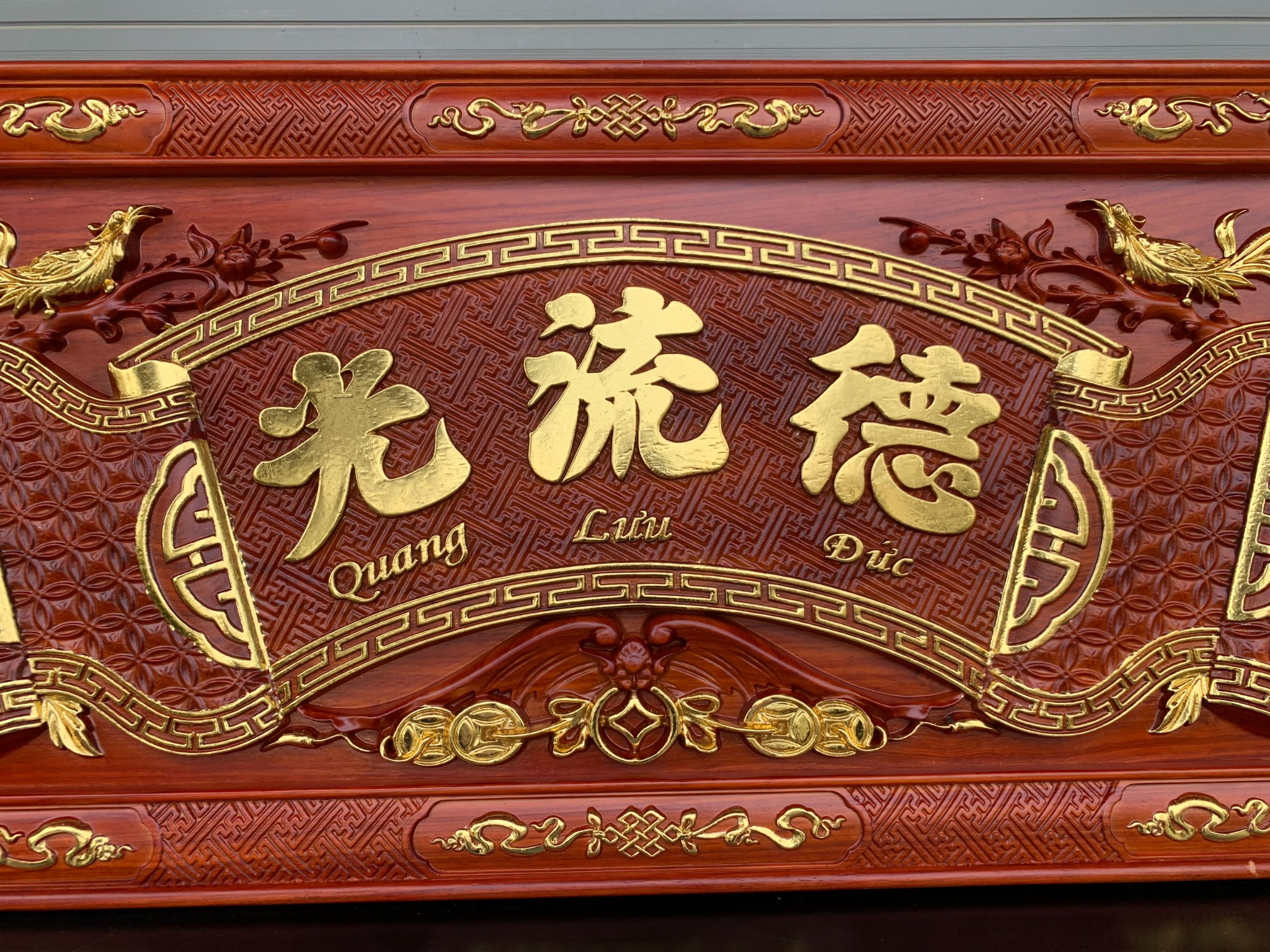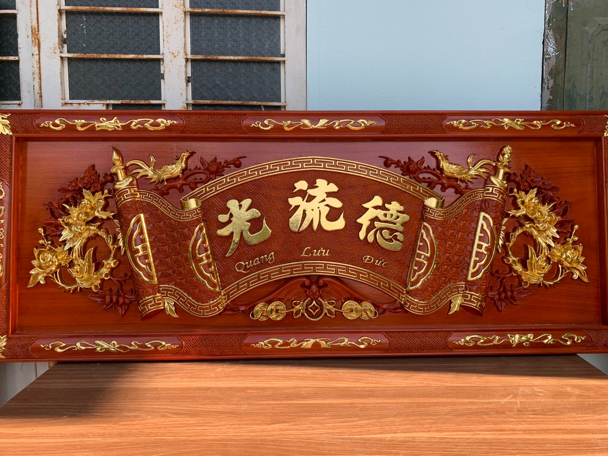 • Vị trí đễ treo hoành phi câu đối gỗ là đặt ngay ngắn nơi chính giữa hoặc vị trí trang trọng của ngôi nhà trên bàn thờ chính và hướng ra bên ngoài cửa. Vị trí của hoành phi câu đối cần được cố định và ít di chuyển tạo cảm giác trang nghiêm và bền vững.