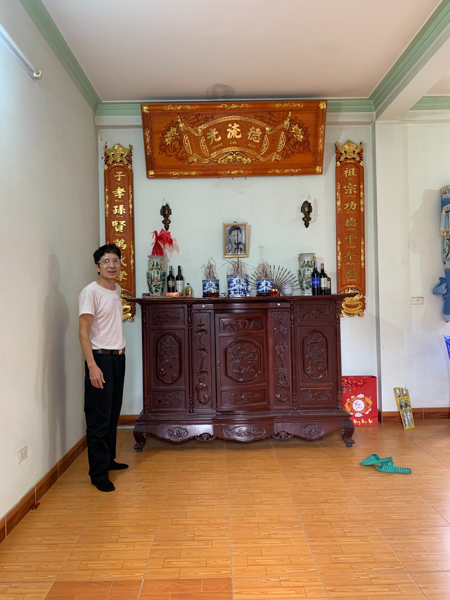 ► Hoành phi câu đối gỗ thường được trang trí rất nhiều trong phòng thờ của các gia đình. Tuy nhiên, không phải ai cũng biết treo như thế nào cho đẹp: