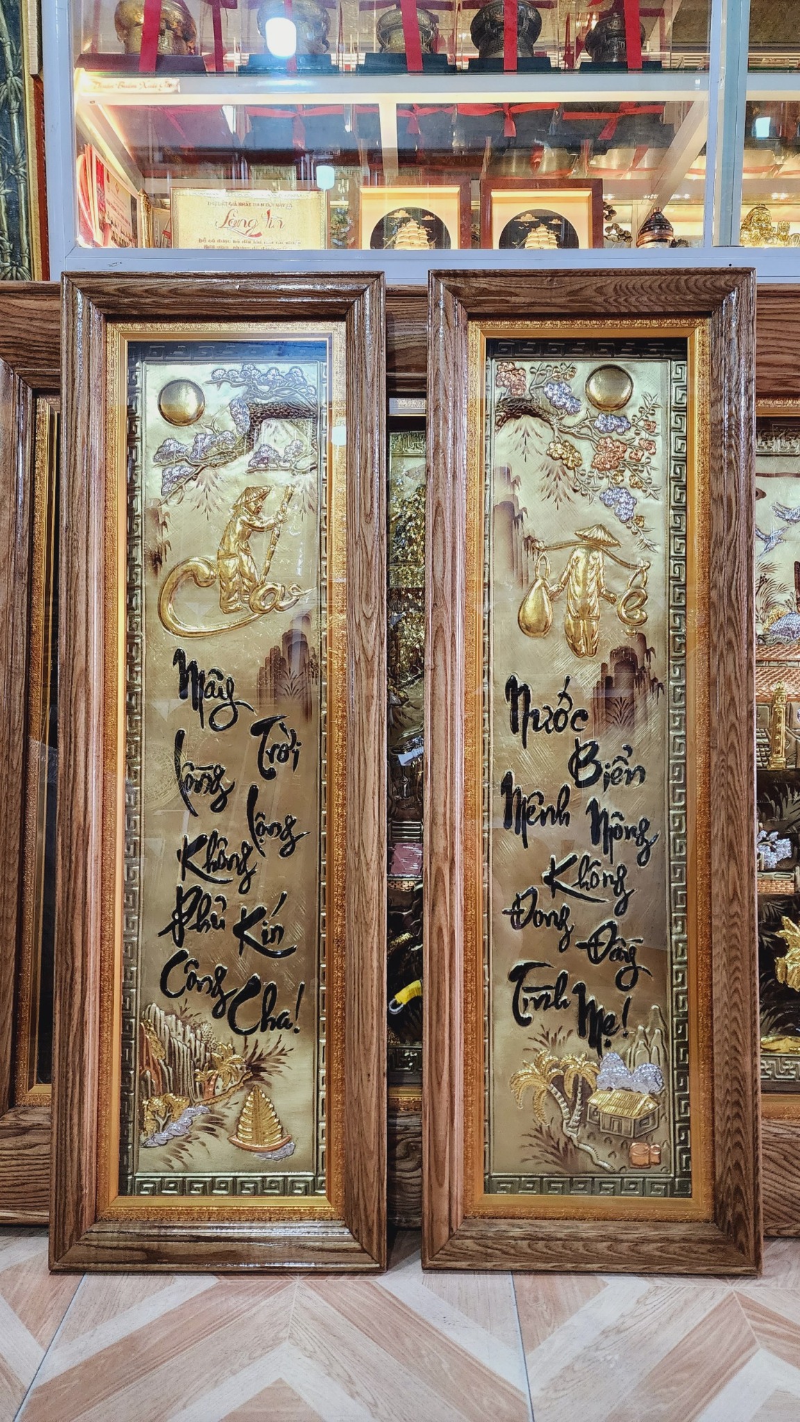 | Chất liệu | - Khung gỗ Sồi Nga - Tranh được làm bằng đồng vàng nguyên tấm |