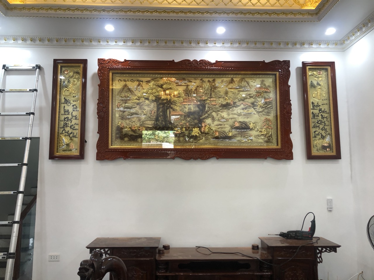 • Tranh đồng quê bằng đồng thường có nhiều kích thước và có khối lượng lớn. Chúng ta cần phải lắp đặt chắc chắn để đảm bảo tính an toàn trong thời gian sử dụng. Chúng ta cần chuẩn bị ke, ốc, vít đủ lớn, đủ chắc chắn để tiến hành thi công lắp đặt.