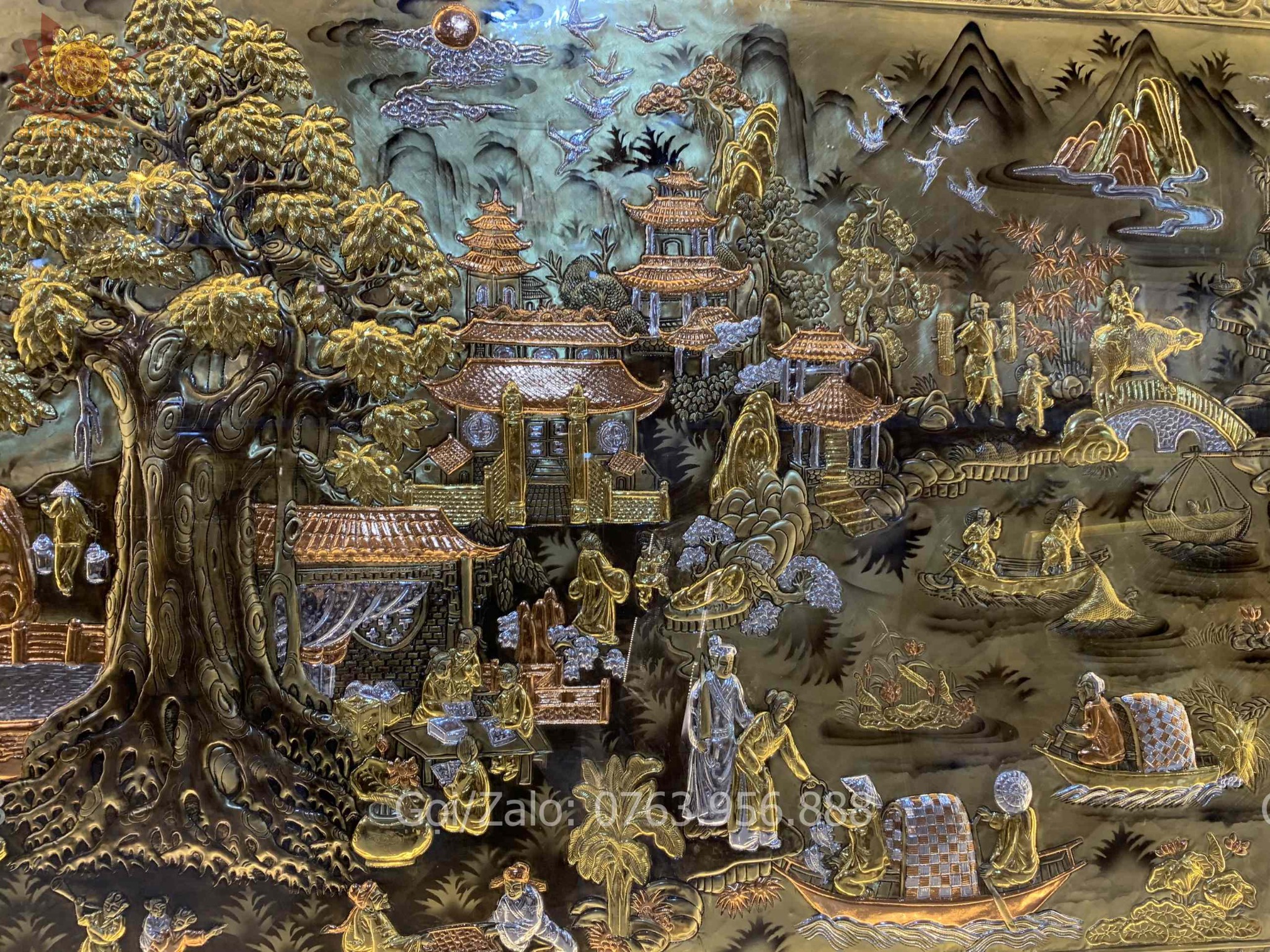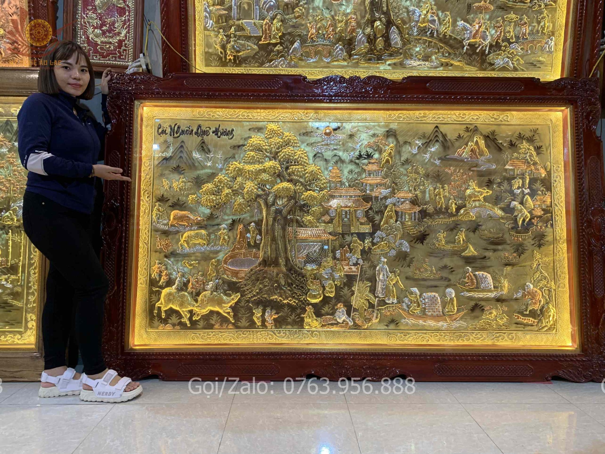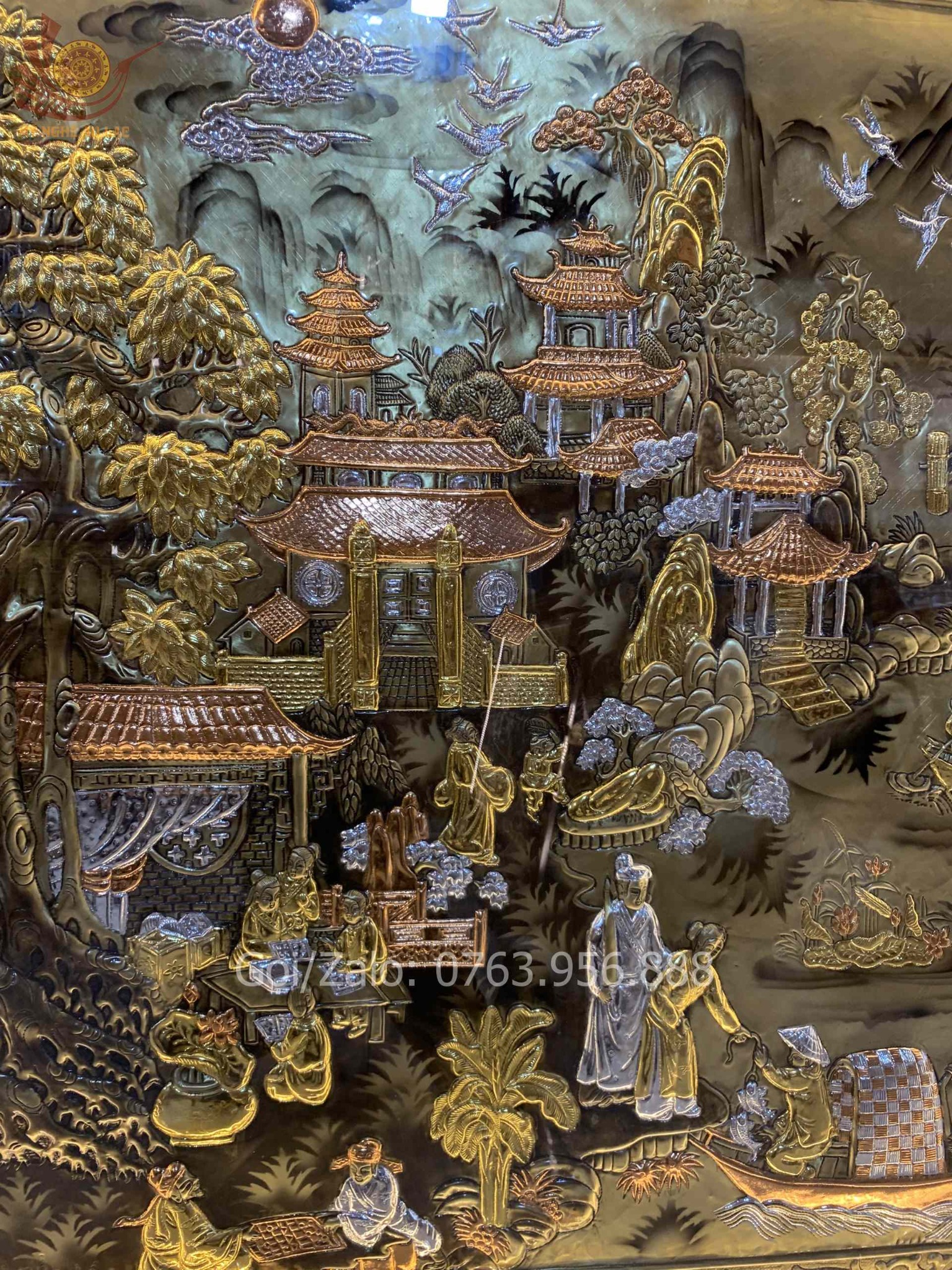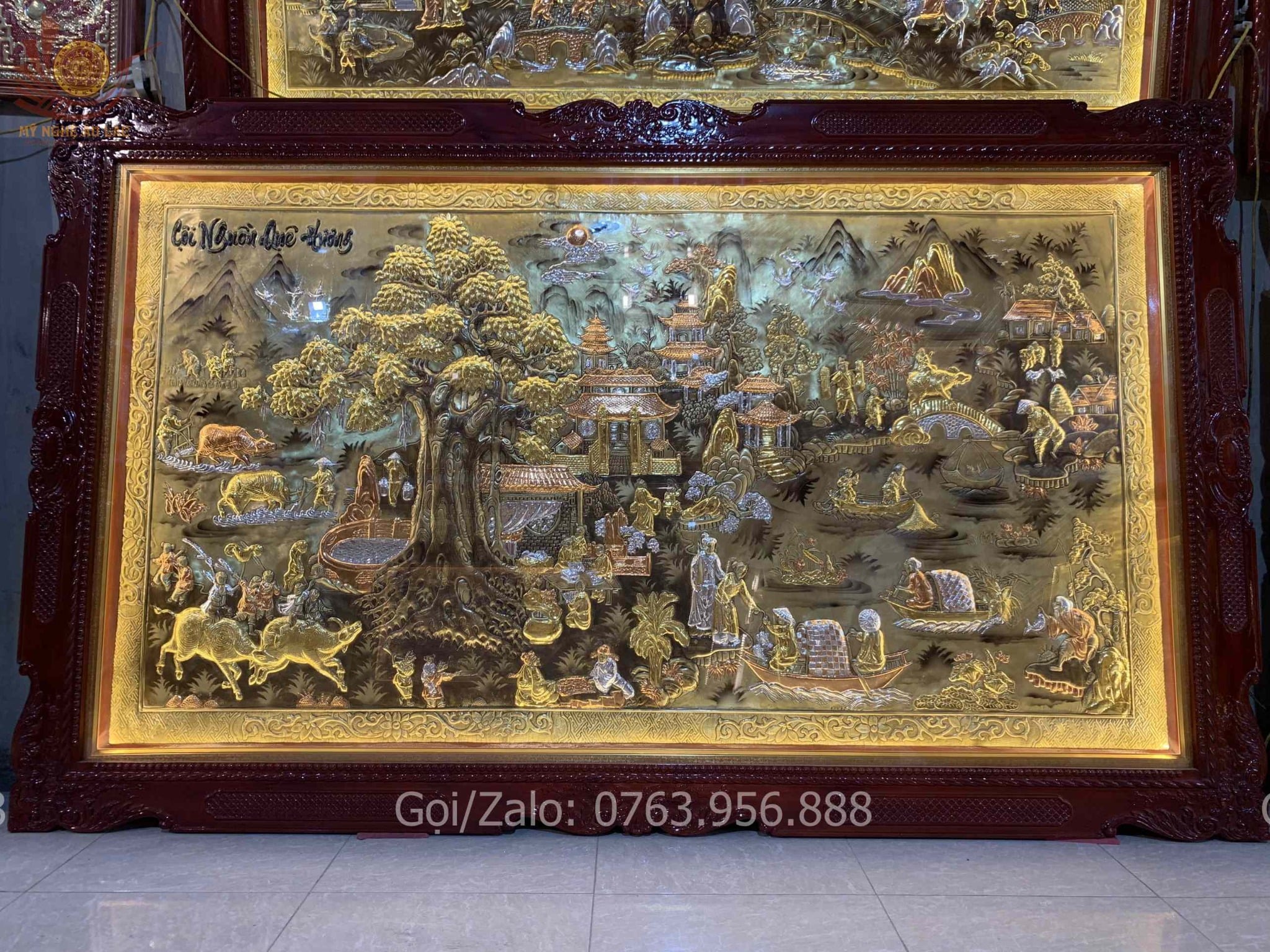 | Chất liệu | - Khung gỗ Sồi Nga - Tranh được làm bằng đồng vàng nguyên tấm |
