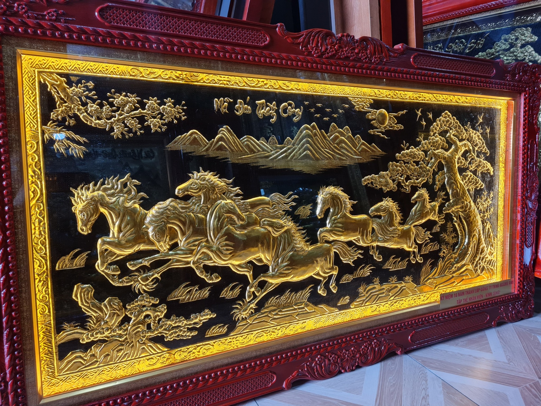 | Chất liệu | - Khung gỗ Sồi Nga - Tranh được làm bằng đồng vàng nguyên tấm |