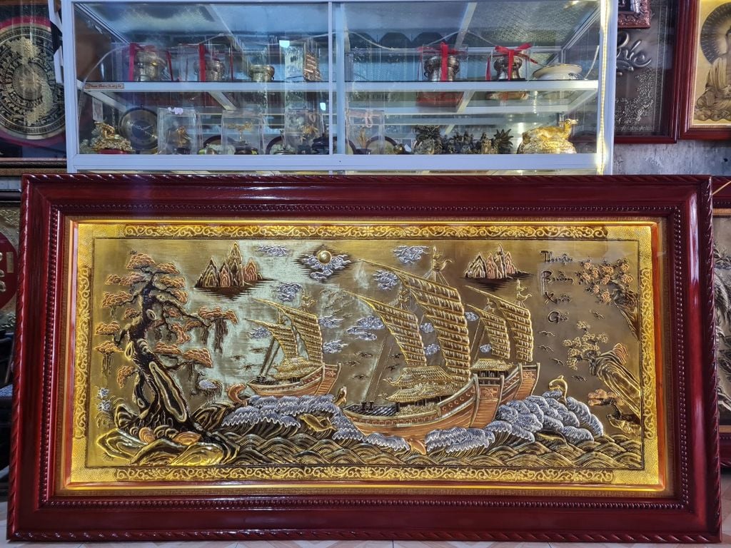| Chất liệu | - Khung gỗ Sồi Nga - Tranh được làm bằng đồng vàng nguyên tấm |