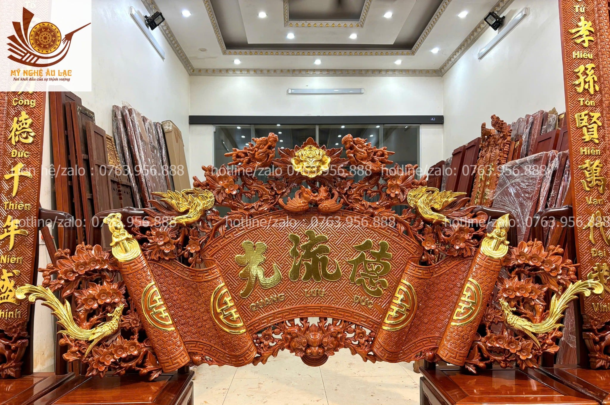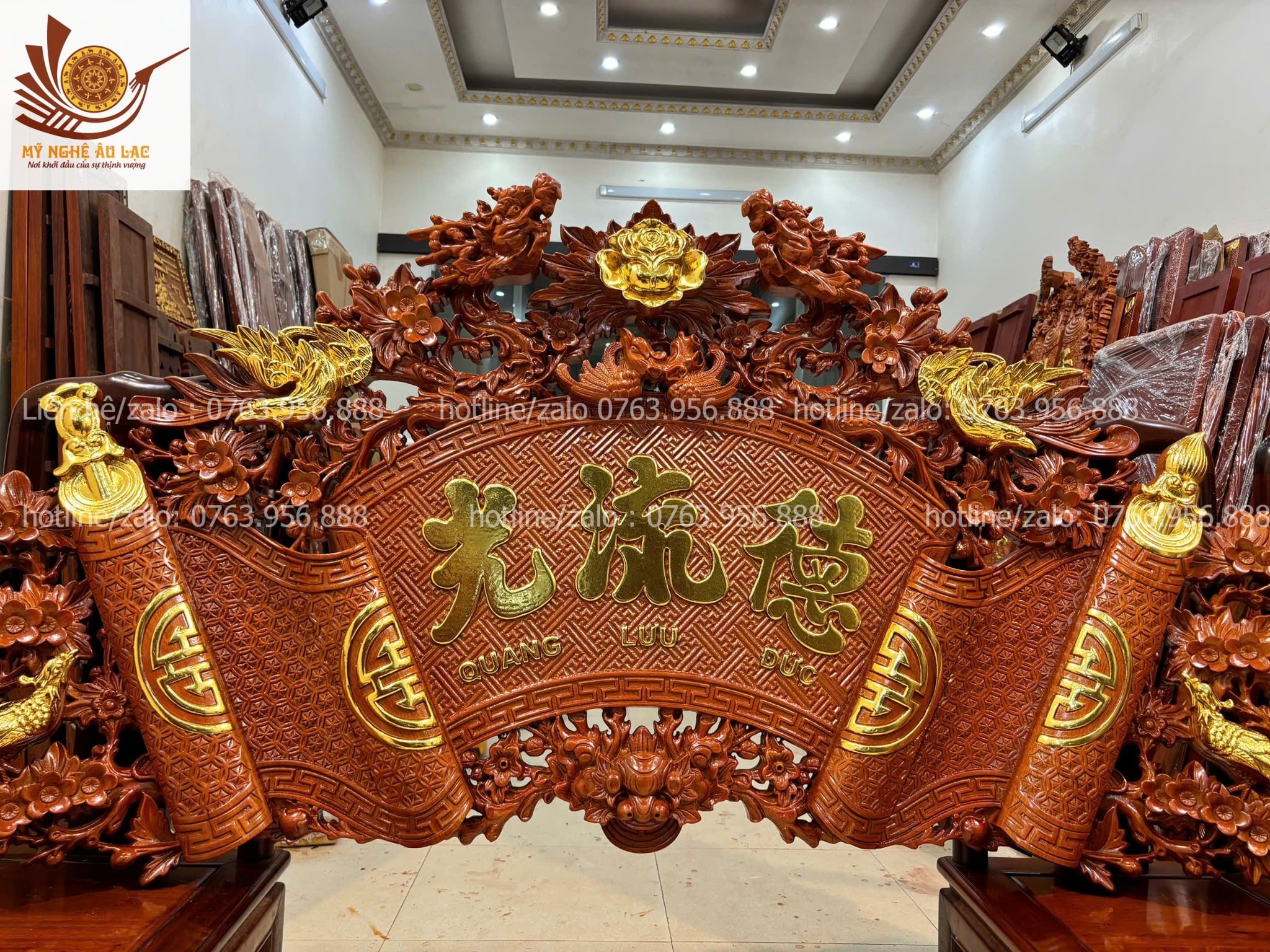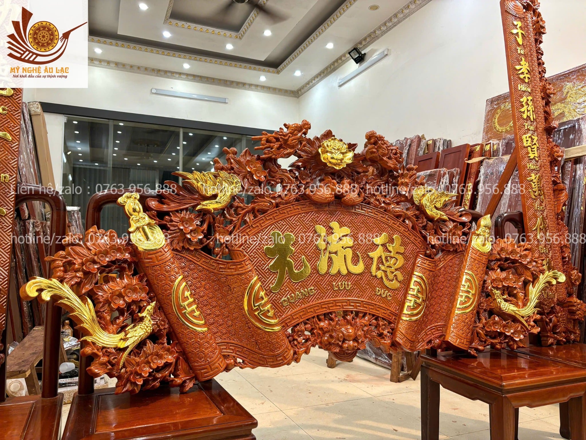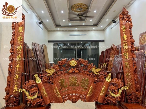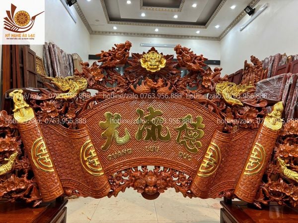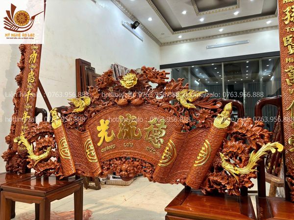 Quy cách | - Bộ cuốn thư được đục sắc nét, kênh bong Từng chi tiết trên bộ cuốn thư, được đục thủ công, tỷ mỷ |