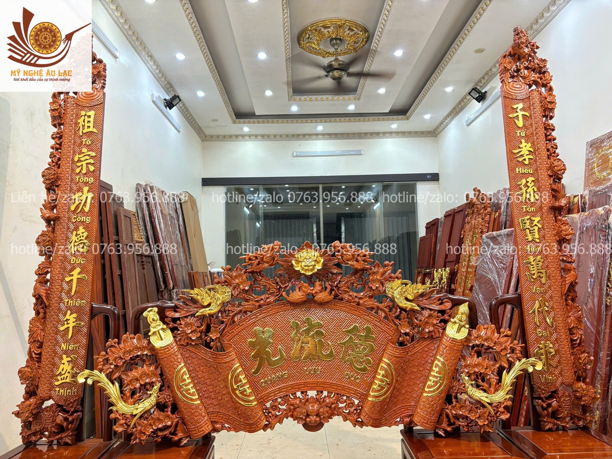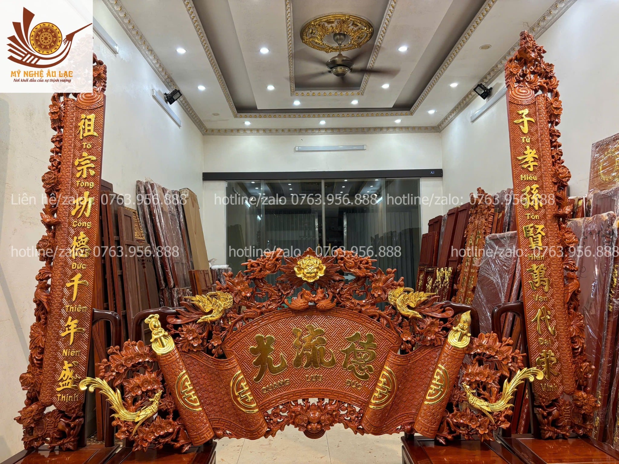 • Kích thước hoành phi câu đối cũng rất đa dạng như 1m55, 1m75, 1m97. Tuỳ thuộc vào không gian thờ mà các bác chọn bộ hoành phi câu đối sao cho cân xứng với không gian thờ.