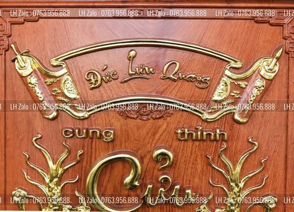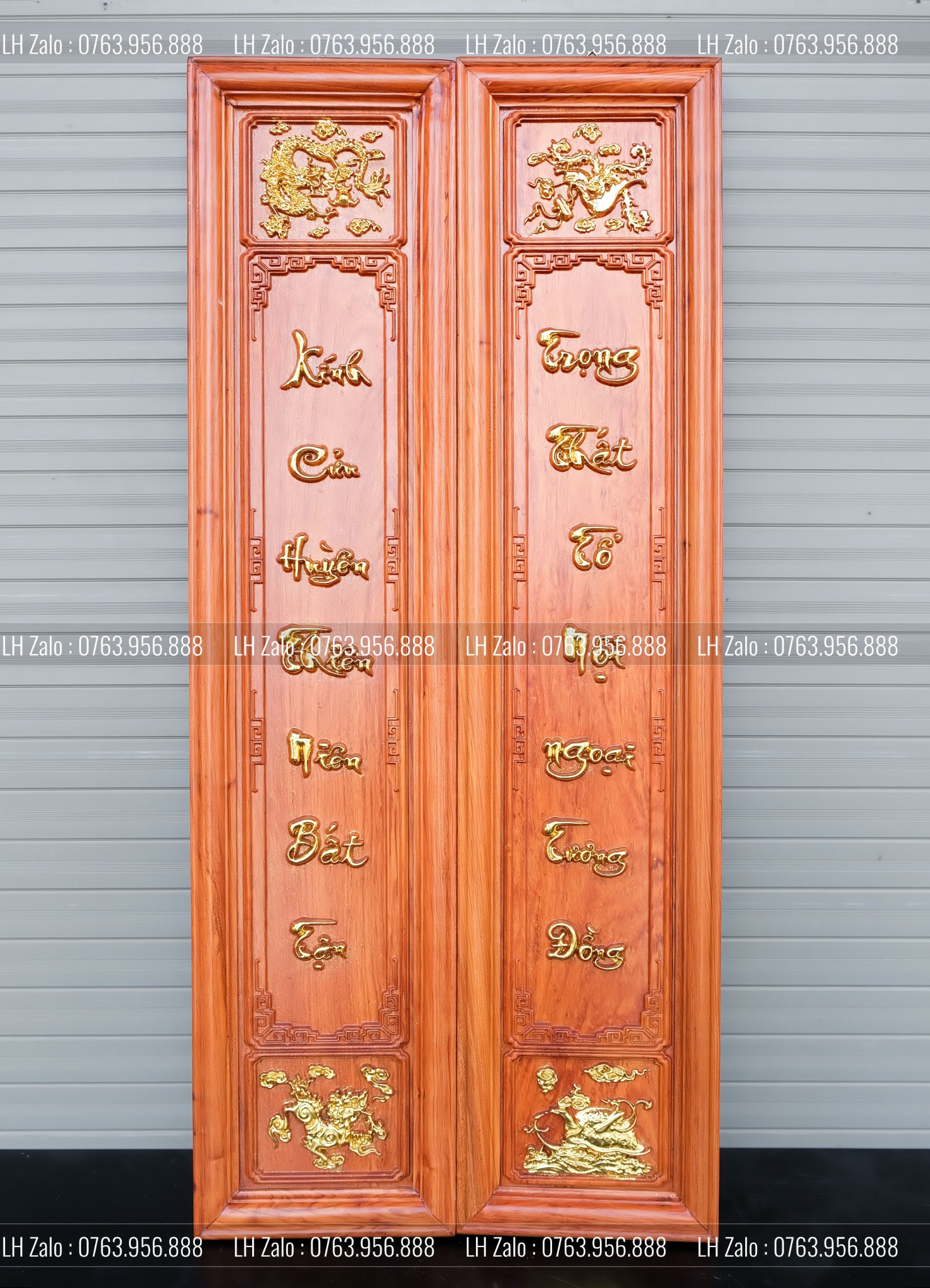 | Độ dày | - Kích thước cửu huyền: cao 107cm, rộng 60cm - khung dày 4cm, ván dày 2.5cm - Kích thước câu đối: Cao 107cm, rộng 24cm, dày 4cm, ván 2.5cm |