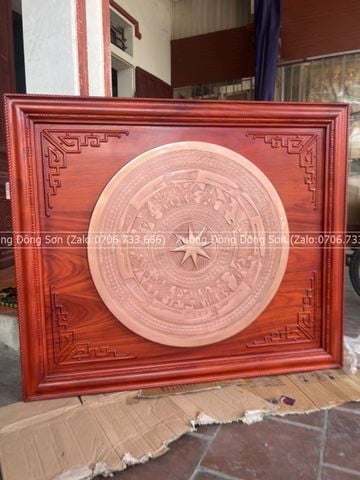 | Quy cách | - Khung tranh bằng gỗ Hương đỏ Nam Phi - Mặt trống đường kính 80cm, nặng 25kg - Họa tiết hoa văn Đông Sơn chạm chìm |